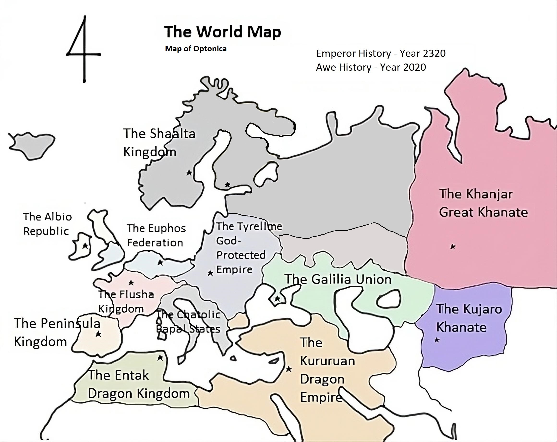 TLN: Please note that the map is available in the previous chapter of 245. It’s an intermission chapter. If you notice about the map, the year is still 2320/2020. However, this chapter started saying it’s currently in 2022. I’m not sure if it’s typo or maybe it’s true. I’m thinking there’s no way the Shaalta Kingdom can take over almost all Papal States country immediately after winning the war in 2320/2020. If that happens in between 2320/2020 until 2322/2022, it’s logical.