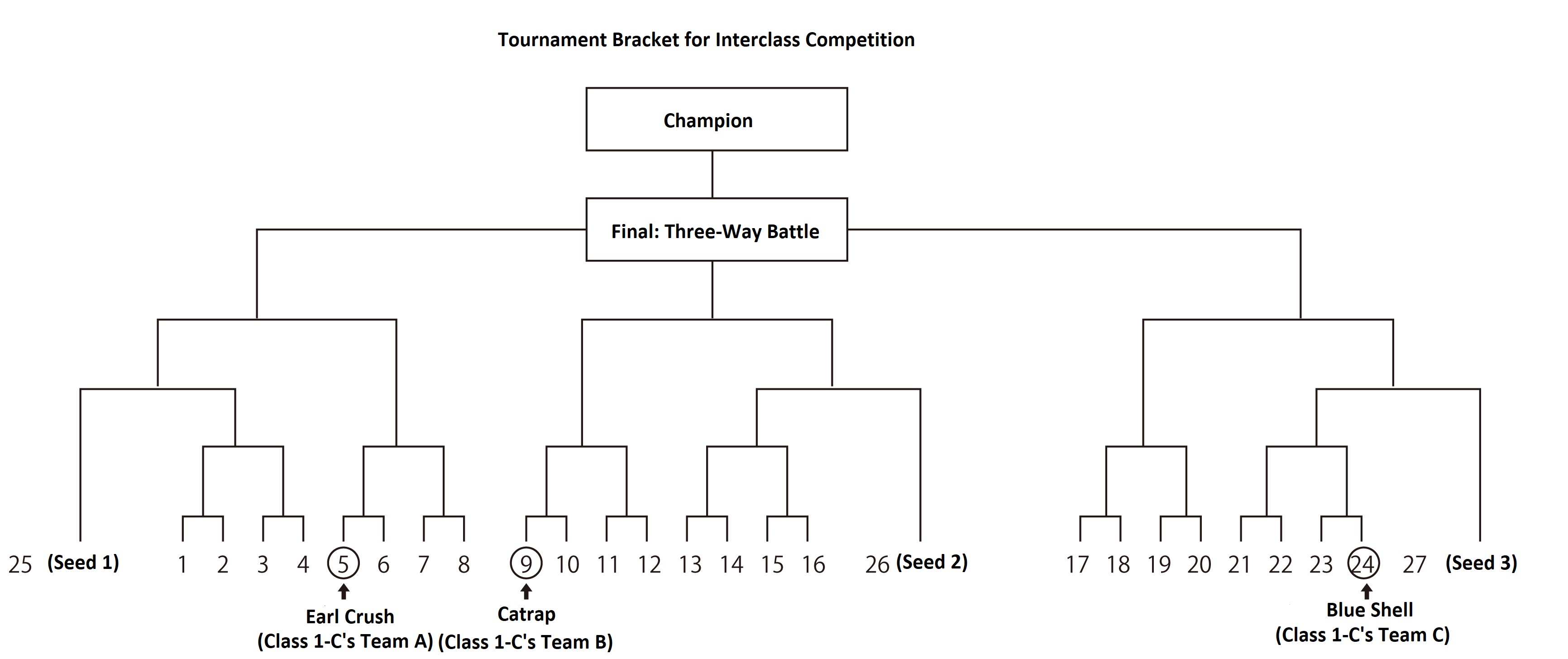 The interclass competition spans seven days and is quite a large-scale event. There are 27 teams in a tournament format. The top three teams from the previous year with the best records are seeded. The tournament is divided into three blocks, with four matches held each day for the first round. This goes on for three days.