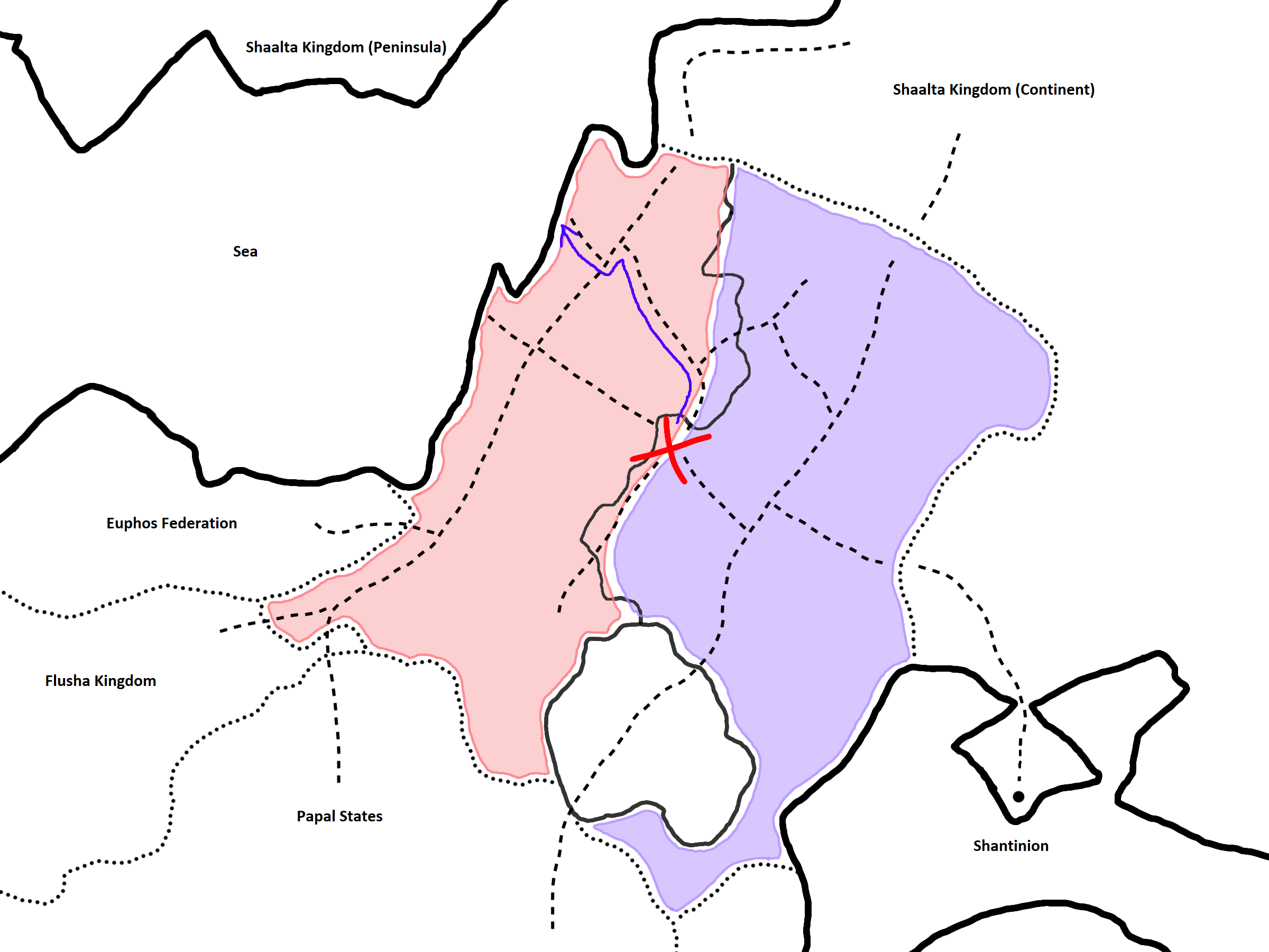 Certainly, this route would allow them to foil the enemy’s plot without coming into contact with them. However, of course, they would need Ange’s permission to do so. If they went ahead without it, they would have to fight in every direction, carving out a bloody path, and occupy the port town at the end of the line. That’s not a feat even Yuri Hou could pull off with a pursuing army at his back.